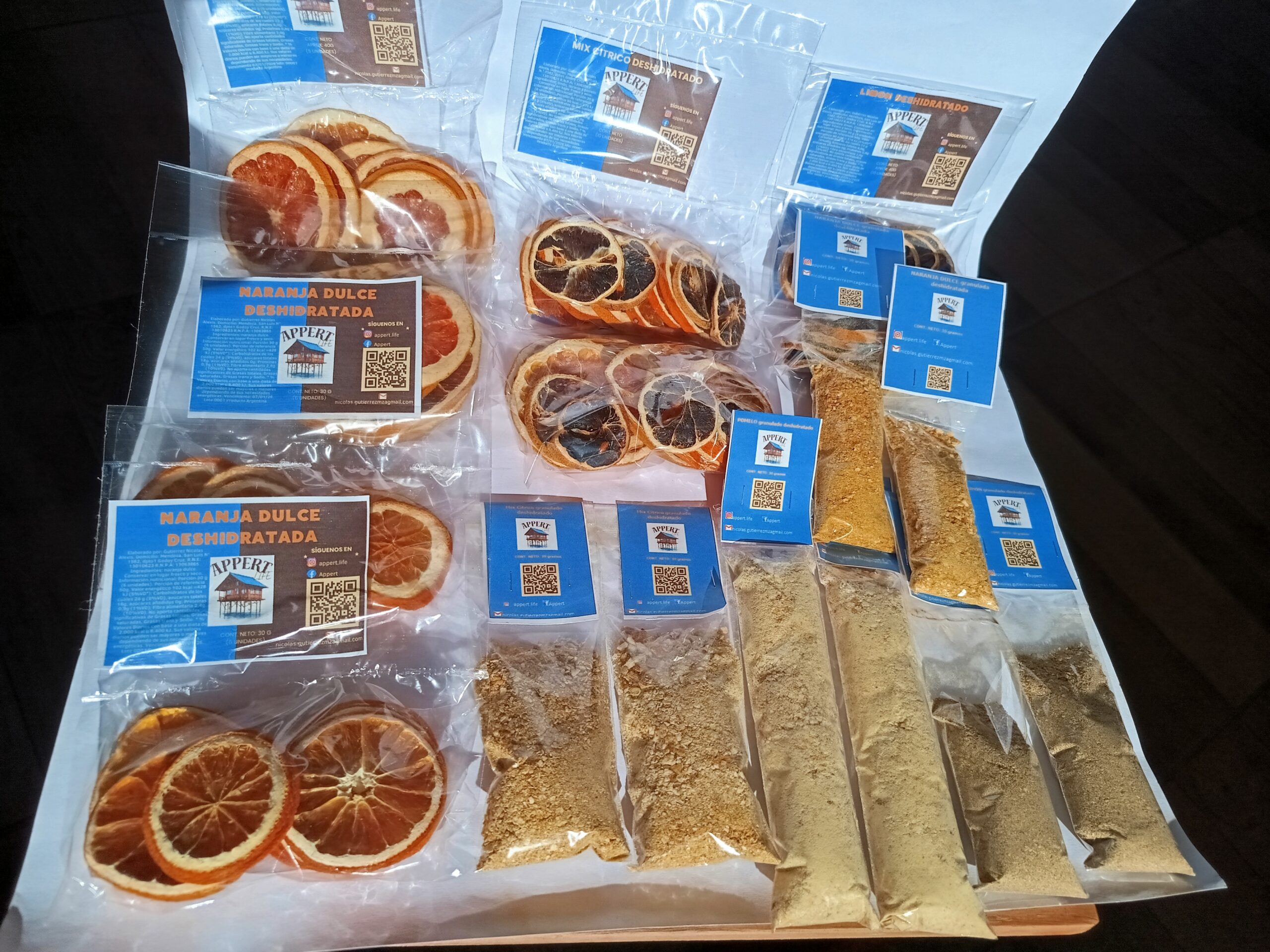 Pack Variado: incluye 4 bolsas de rodajas deshidratadas y 4 bolsas de granulados cítricos.